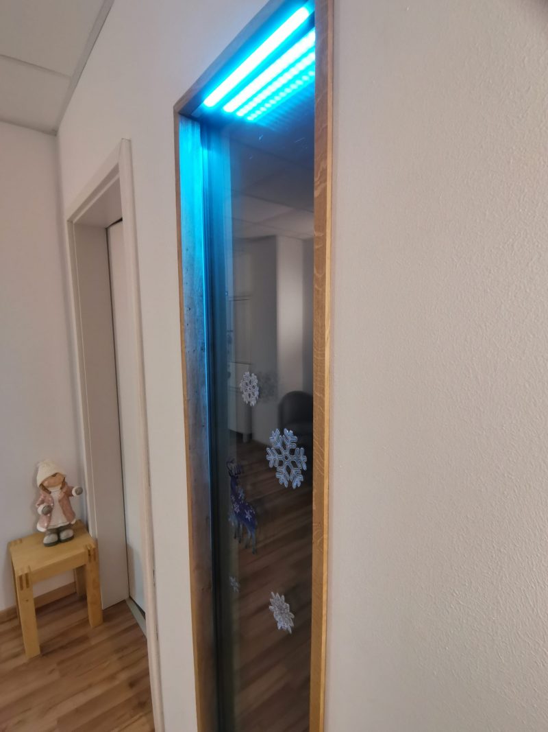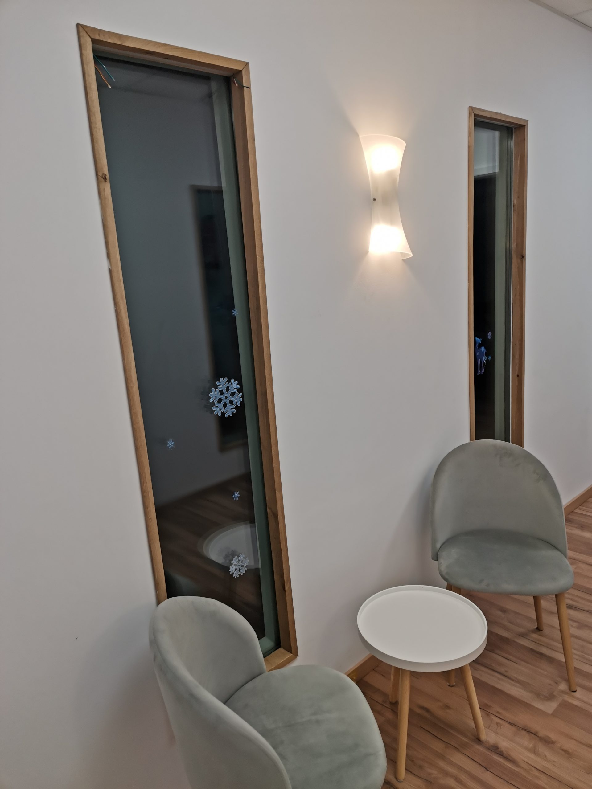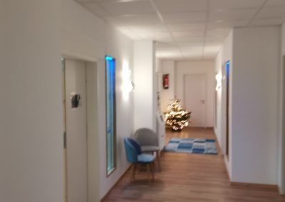 Um einen besseren Lichteinfall in die einzelnen Räume zu gewährleisten wurden schallisolierende Glasscheiben verbaut, die dem ganzen Institut zusätzlich einen freundlichen und offenen Charakter geben.
