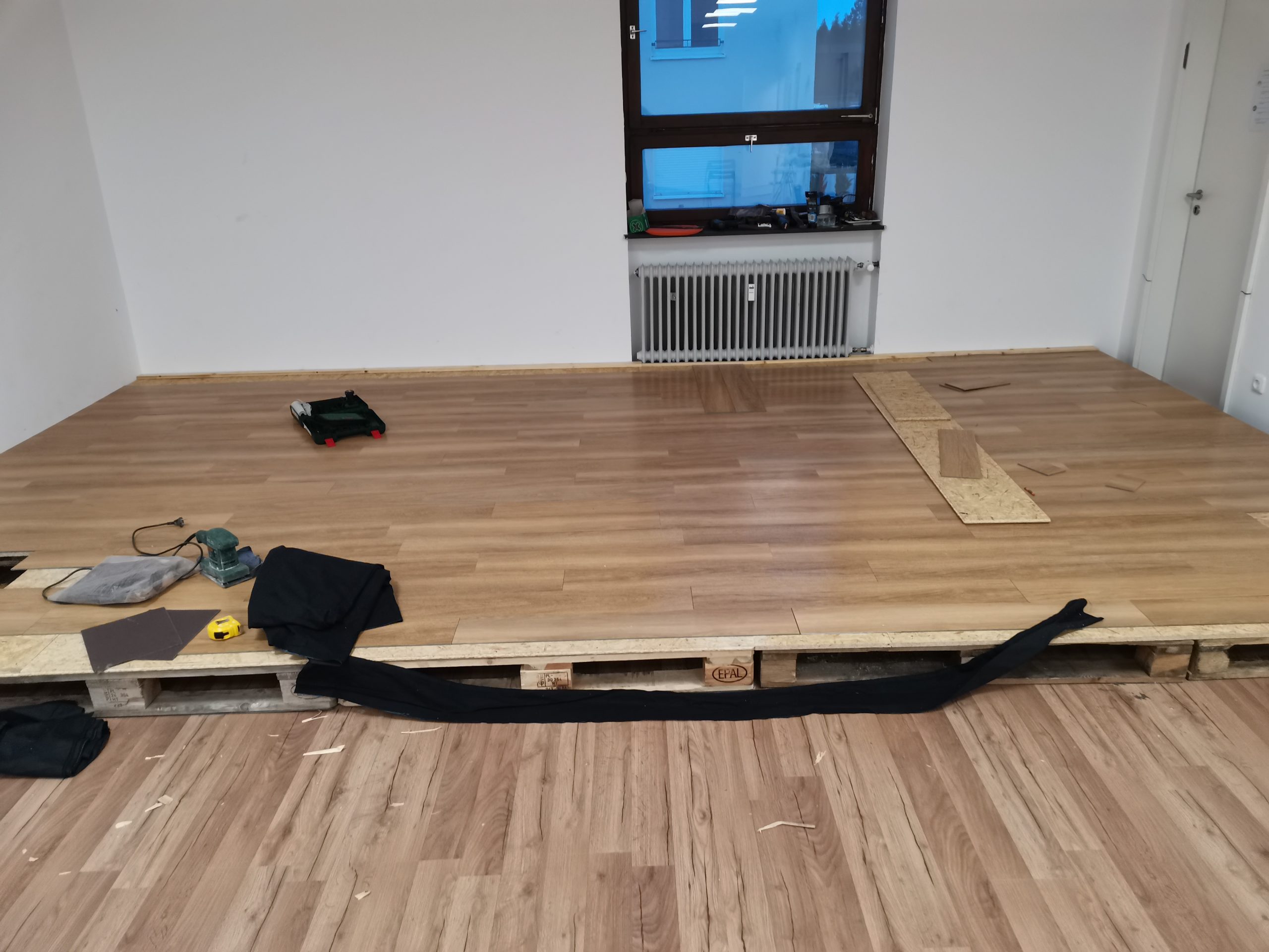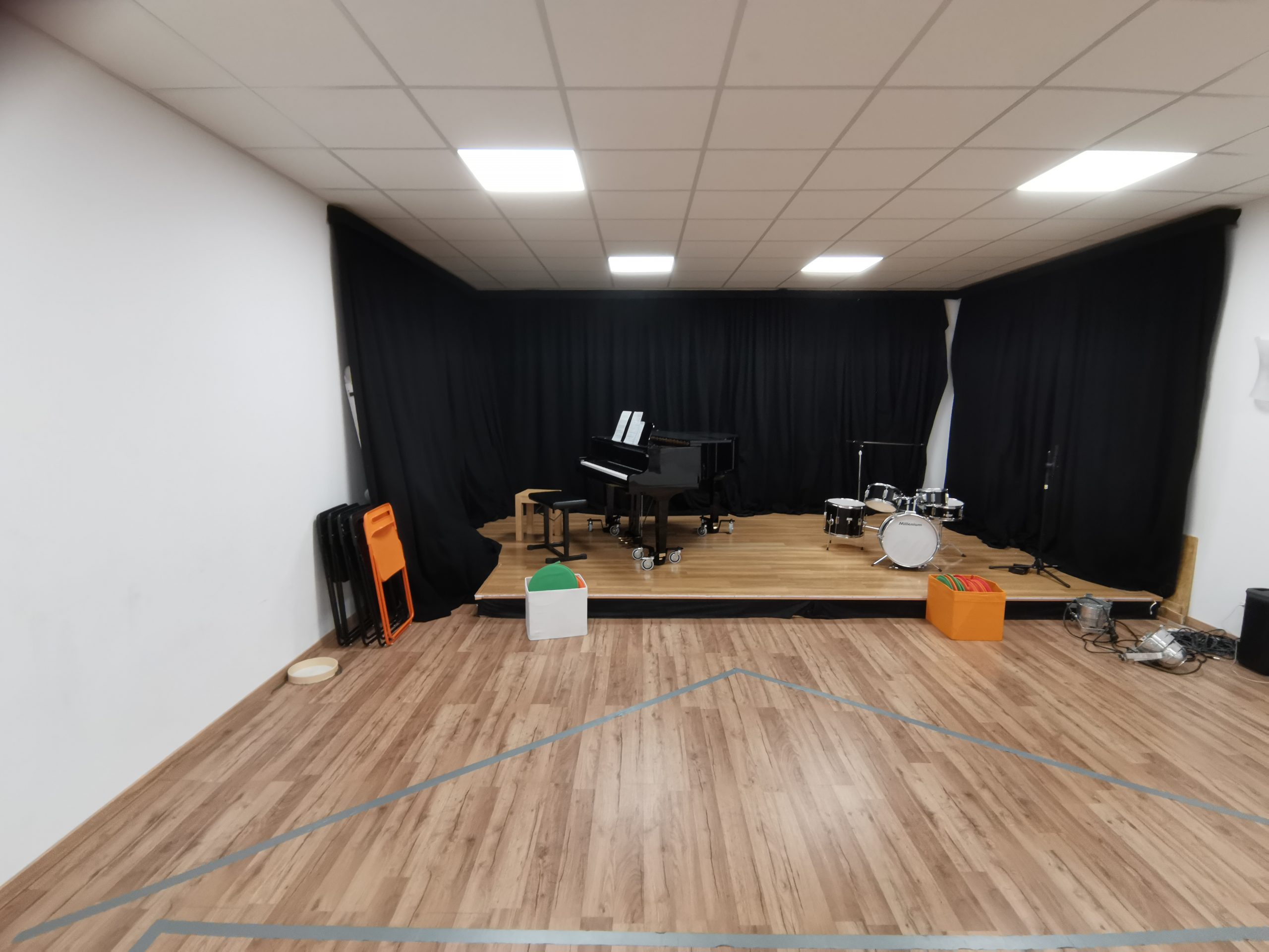 Auf der Suche nach neuen Unterrichtsräumen wurde das Musikinstitut aus Unterhaching in der Kapellenstraße fündig. Dort war ein ehemaliges Reifenlager zu mieten. Aus der Halle sollte ein lebendiger und gemütlicher Ort zum Musizieren werden.