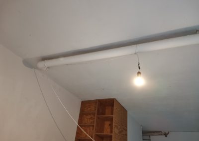 ihrIn einem zeitweise auch als Schlafraum genutzen Raum eines war die Decke in Holziegelbauweise besonders hellhörig. Jeder Schritt, sogar jedes Vibrieren des Handys des Bewohners der wohnung oberhalb konnte unten lautstark vernommen werden. Zusätzlich verliefen mehrere Abwasserrohre an Zimmerdecke und Zimmerwand.